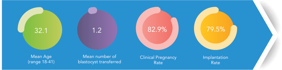 Pregnancy rate from transferring a single good graded euploid blastocyst.