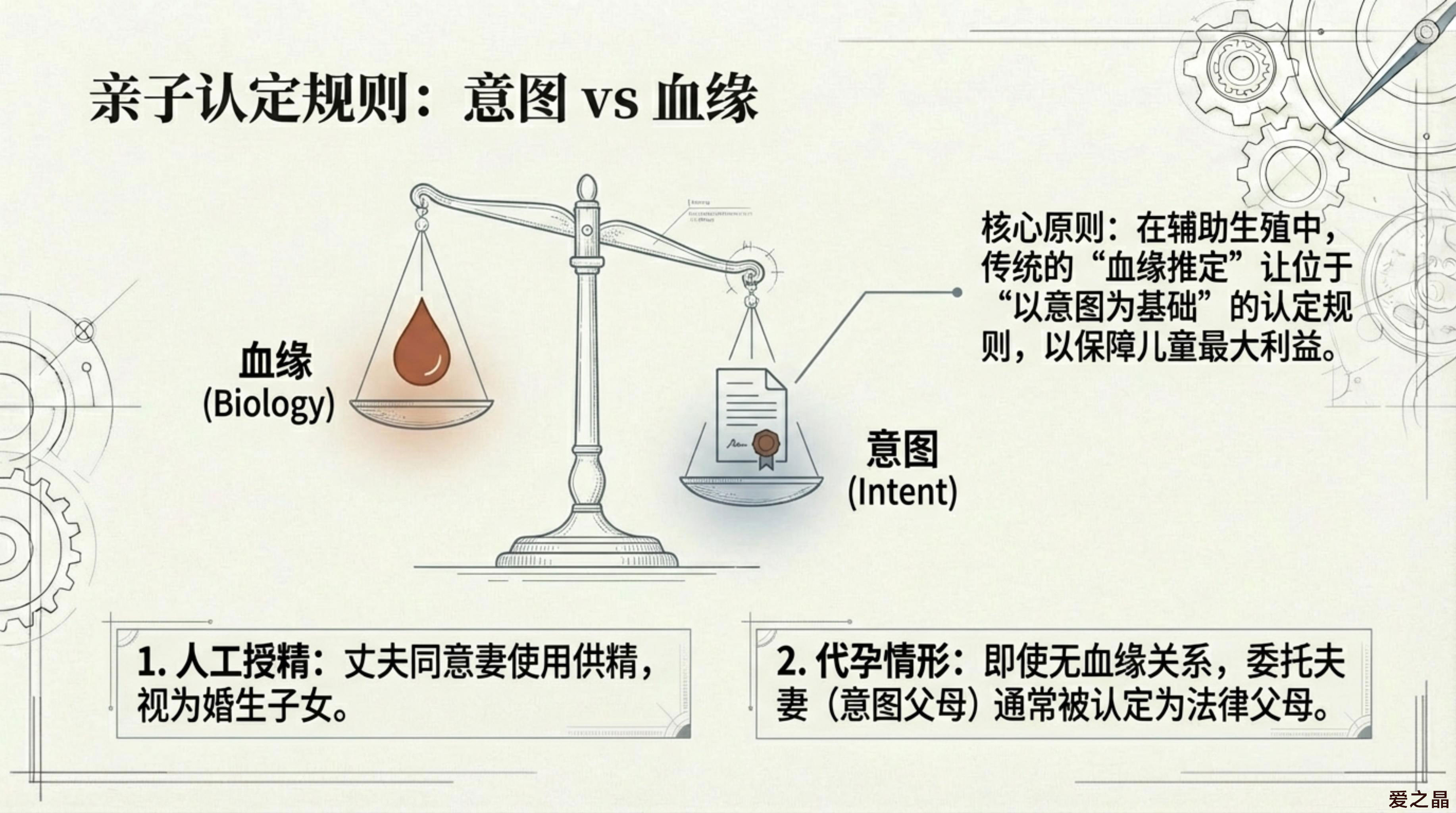 总结: 辅助生殖技术将传统的亲子关系从“生物学单一决定论”推向了 生物、遗传、心理和社会抚育多重维度 并存的复杂体系。这种转变要求法律不仅要考虑血缘,更要平衡各方主体的生育权、子女的福祉以及社会伦理的稳定。