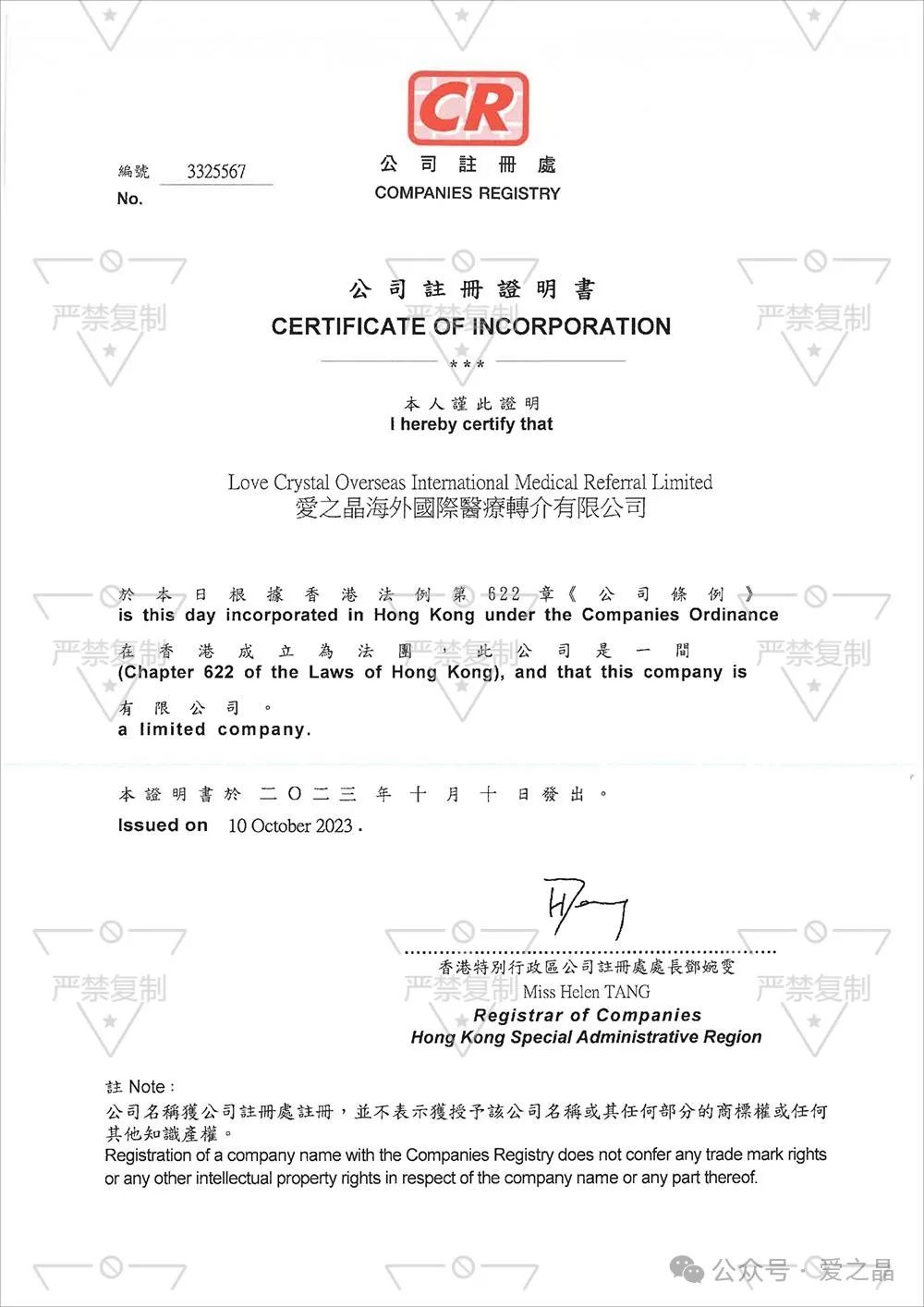 愛之晶海外國際醫療轉介有限公司是一家专注于医疗健康旅游领域的综合性服务提供商,总部位于香港。